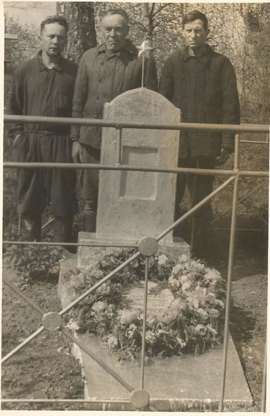 Мошенинцы у могилы Героя Советского Союза В. А. Толкачёва. Из семейного архива Киселевых