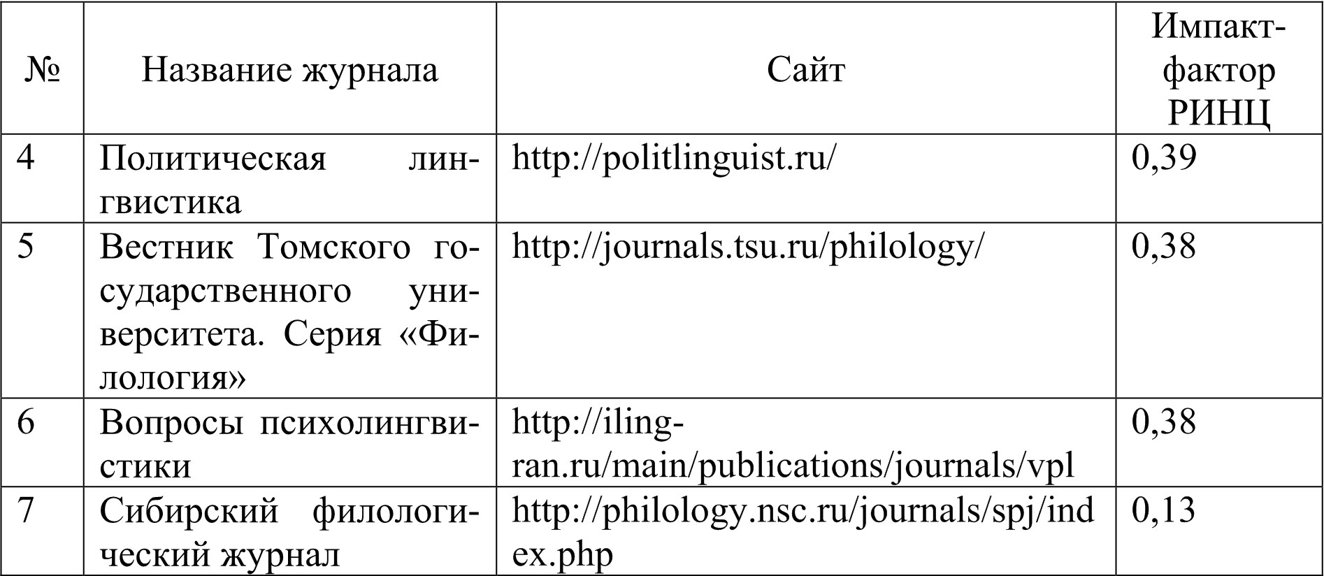 Не ограничивайте себя работами только по изучаемому языку, читайте заинтересовавшие вас исследования и на материале других языков. Библиотеки вузов выписывают «Реферативный журнал» с обзорами последних научных изданий. Ознакомьтесь с выпусками научных периодических изданий: «Вестник МГУ» (серии «Филология», «Лингвистика и межкультурная коммуникация»), «Вопросы языкознания», «Филологические науки» и т. д. В табл. 2 представлены наиболее авторитетные филологические журналы, архивы которых доступны онлайн. Работая с журналами, важно обращать внимание на их импакт-фактор, который складывается из количества цитирований публикаций этих журналов в других источниках и изданиях – чем авторитетнее журнал, тем выше у него импакт-фактор. Посмотреть импакт-факторы журналов можно на сайте Российской научной электронной библиотеки http://elibrary.ru/project.