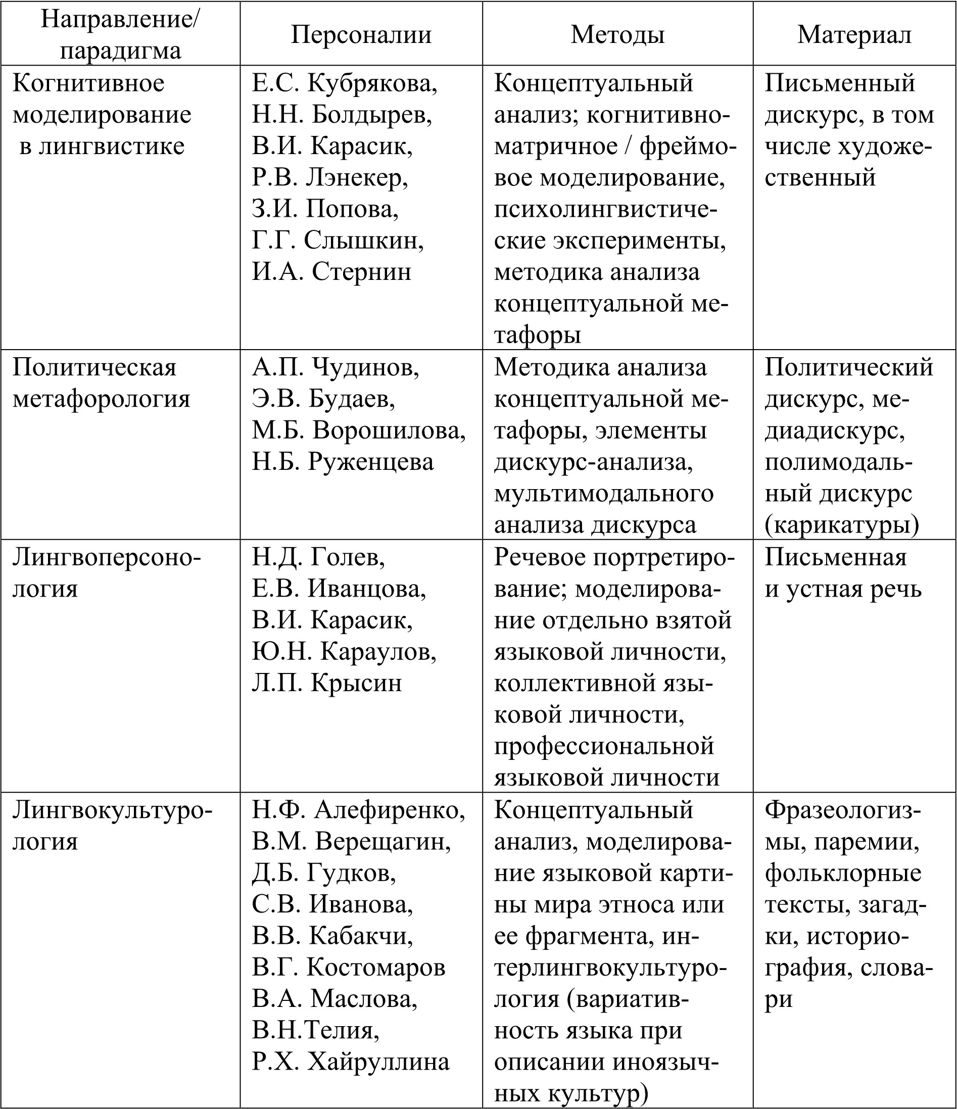 Ключевые парадигмы современной (преимущественно отечественной) лингвистики в области когнитивно-дискурсивной макропарадигмы