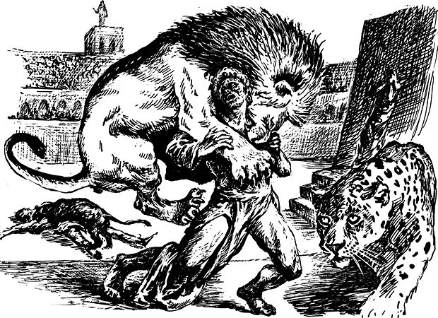 Словом, в армии царила анархия, в империи – хаос, потому что, покупая власть за деньги, цезари, как правило, не знали, что им делать с этой властью. Так, император Север Антонин Август по прозвищу Каракалла (198–217 гг.) начал свое правление с убийства родного брата и двадцати тысяч его сторонников. Прозвище «Каракалла» он получил из-за длинного варварского плаща, который носил, – он и был настоящий варвар, отупевший от войны и охоты. Больше всего он любил загонять кабанов и мог один на один расправиться со зверем. Во дворце Каракалла держал львов, чтобы не ходить далеко, если вдруг захочется сразиться с ними. Имелся среди них и любимец, которого правитель усаживал рядом с собой за стол и даже укладывал в кровать.