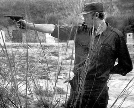 В. К. Магонов стреляет из американского «кольта», выменянного на тушенку. Луанда, 1976 год