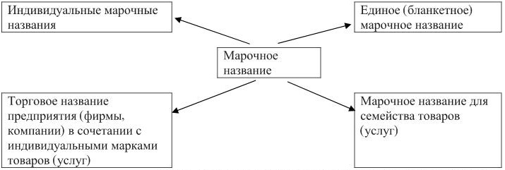На рис.2 представлены основные подходы присвоения марочного названия. Товарный знак (знак обслуживания) может быть зарегистрирован на имя юридического лица, а также физического лица, осуществляющего предпринимательскую деятельность. На зарегистрированный товарный знак (знак обслуживания) выдается свидетельство, которое удостоверяет приоритет товарного знака, исключительное право владельца на товарный знак в отношении товаров, указанных в свидетельстве.