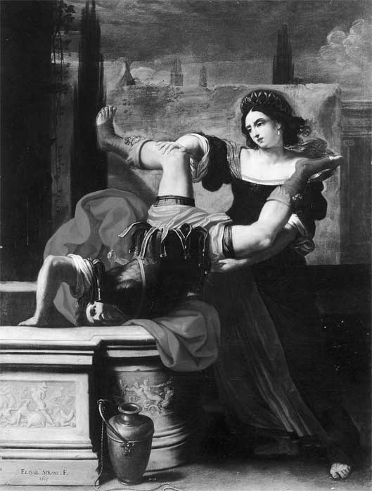 ВозмездиеУ болонской художницы Элизабетты Сирани есть целая серия картин на исторические и мифические сюжеты о мстительницах и сильных женщинах. Считается, что изнасилованная после захвата Фив знатная женщина Тимоклея хитростью заманила командира фракийцев в сад, обещав показать сокровища в колодце. И показала, сбросив туда насильника и завалив его камнями. Александр Македонский оправдал ее, услышав эту историю.