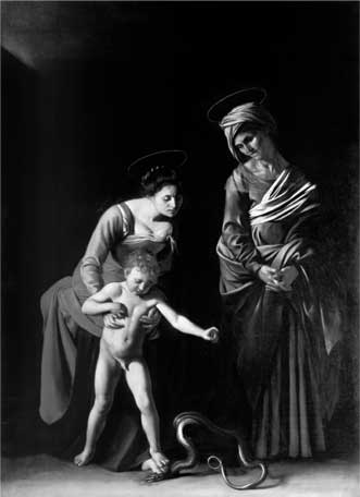 МадоннаКараваджо написал деву Марию с самой известной в Риме проститутки Маддалены Антоньетти – Лены, но ее ребенок – воплощение святой простоты, ведь он не виноват в провинностях матери и даже попирает символ греха. В образе маленького Христа Караваджо изобразил сына Лены Стефано, который не был его сыном. В образе святой Анны изображена служительница приюта, где воспитывался мальчик. Полотно даже успело повисеть в церкви святой Анны, правда всего два дня, пока все прихожане и священники не разглядели куртизанку в образе Мадонны. К счастью, полотно с радостью перекупил богач из семьи Боргезе, в чьей галерее она выставляется и сейчас.