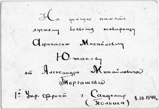 На фото в нижнем ряду (слева направо): третий – командир полка полковник А. П. Сарычев; последний в ряду – А. М. Южаков.
