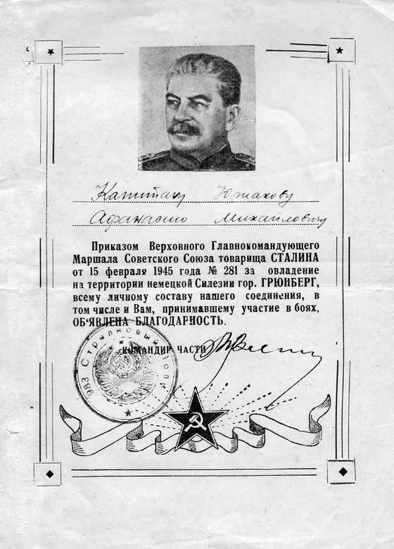 В боях за этот город был ранен и мой друг – начальник химической службы Николай Чапленко. Пришлось оставить его, спрятав в стенной нише, скрытой от обстрела. А я должен был срочно прибыть в дивизию, поскольку нес при себе дивизионное знамя. Командир, увидев символ борьбы и побед нашего подразделения, был доволен. Правда, полотно теперь осталось без древка. Он пожал мне руку и объявил благодарность за спасение боевого знамени дивизии.
