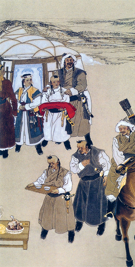«Когда исполнилось Тэмужину девять лет, Есухэй-батор отправился вместе с ним к родичам жены – олхунудам сватать сыну невесту», – так автор «Сокровенного сказания монголов» начал описание традиционного для монголов ритуала сватовства и последовавших за ним событий.