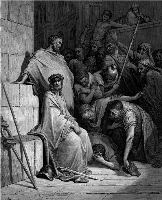 Пилату все-таки хотелось освободить Христа. Он вывел Его на крыльцо, у которого стояли иудеи, и сказал им: «Смотрите, вот Царь ваш!» (Посмотрите на Этого Человека: похож ли Он на Царя?) Но они снова стали требовать распятия Иисуса. Пилат обратился к иудеям: «Неужели распять вашего Царя?» «Нет у нас другого царя, кроме кесаря (римского царя)», – ответили ему первосвященники.
