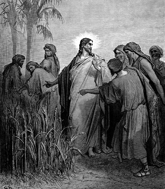 Иисус Христос оправдывает учеников Своих, срывавших колосья в субботу. (Евангелие от Матфея 12:1–8; Евангелие от Марка 2:23–28; Евангелие от Луки 6:1–5)