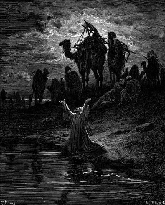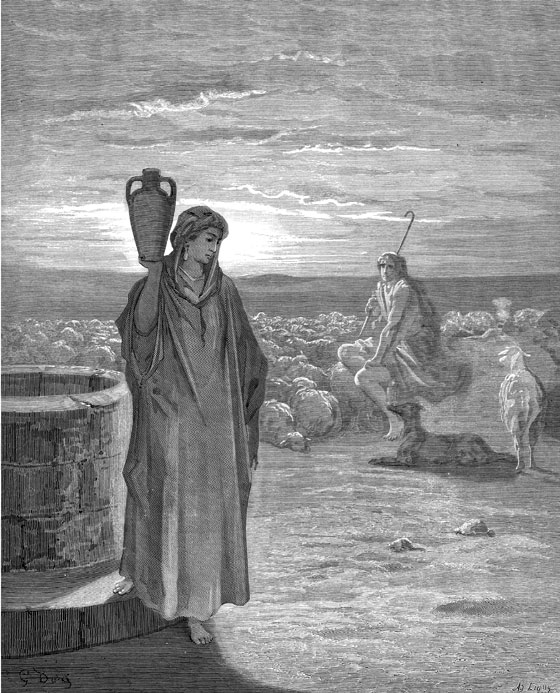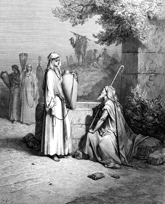 Через несколько дней пришел он к одному иностранному городу. Перед городом находился колодец. «Постой, – подумал Елеазар, – я остановлюсь у этого колодца и подожду, пока стемнеет. Тогда придут за водой молодые девицы и, может быть, среди них найдется та, которую Бог назначил Исааку». Он помолился Богу, прося, чтобы Он указал ему благочестивую девицу для милого Исаака.
