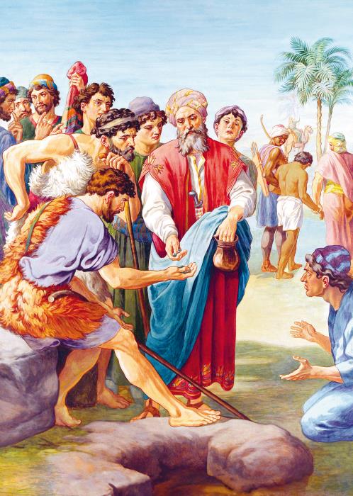 На следующее утро десять братьев взяли верблюдов, пустые мешки, деньги и отправились в Египет. Там они пришли к Иосифу, упали перед ним на колени и стали просить, чтобы он продал им хлеба. Братья не узнали его. Они и подумать не могли, что распорядителем хлеба может быть Иосиф, которого они считали давно умершим. Иосиф же узнал братьев с первого взгляда. Но он не подал виду, что знает их, и держался, как с незнакомцами. «Надо посмотреть, – думал он про себя, – исправились ли мои братья?»