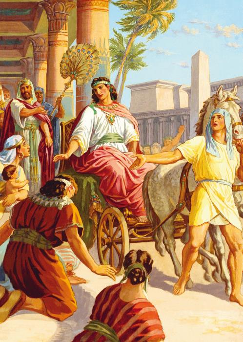 – Я думаю, что лучше тебя мне не найти человека, которому можно было бы поручить собирать хлеб, когда его будет много, и запасать на голодные годы. Я выбираю тебя, потому что в тебе живёт Дух Божий. Даю тебе власть над всем Египтом. Весь народ должен повиноваться тебе.