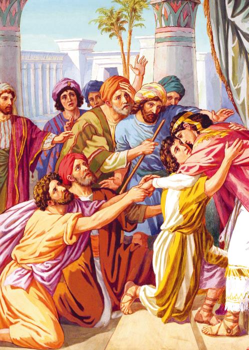 – Господин мой, позволь сказать тебе одно слово. Наш добрый старый отец не хотел отпускать с нами младшего брата. Когда мы уезжали, он сказал нам, что, если мы не привезём Вениамина домой, мы сведём его в могилу. Подумай, господин мой, если мы возвратимся без младшего брата, отец наш умрёт с горя. Он так сильно любит его! Поэтому я прошу тебя: позволь мне остаться здесь. Я буду рабом твоим, только пусть Вениамин вернётся к отцу!