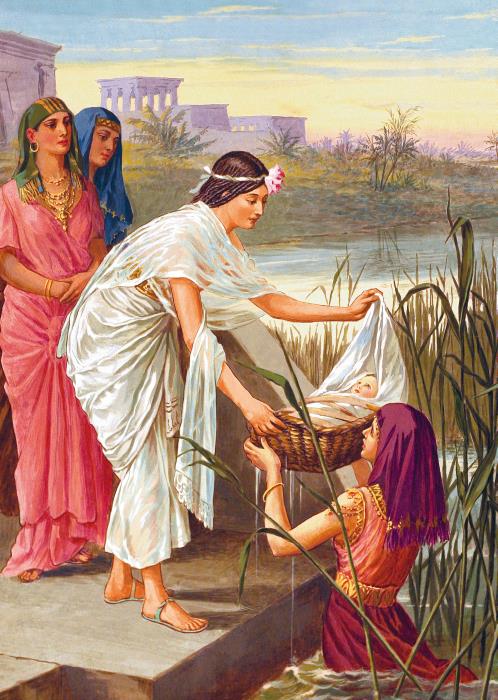 Жили в то время двое благочестивых израильтян, муж и жена. Господь даровал им милого здоровенького мальчика. Чтобы ребёнок не попал в руки злых египтян, мать спрятала его. У неё в доме был уголок, куда никто не заглядывал. Сначала всё было хорошо. Но когда мальчику исполнилось три месяца, голосок его стал звонким, и кричал он иногда очень громко. Мать стала опасаться: «Если египтяне когда-нибудь услышат, что плачет дитя, они придут сюда, отыщут его и отнимут у меня. Что я стану тогда делать?»