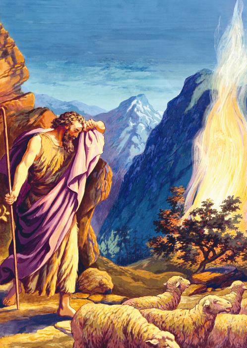Однажды Моисей пас овец в пустыне и поднялся на какую-то гору, она вся была покрыта кустарниками. Вдруг ему показалось, что горит целый куст. Но чудо! При этом не сгорела ни одна веточка, не потемнел ни один листик.