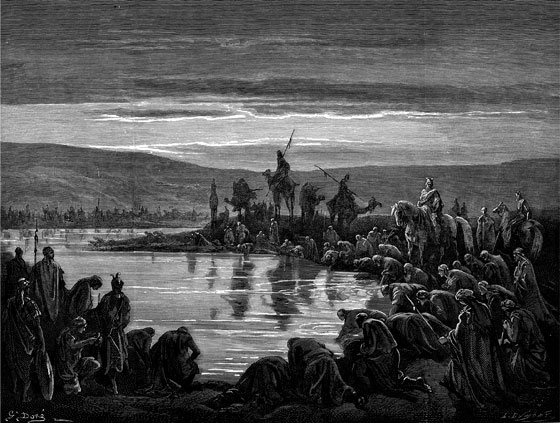 Гедеон выбирает воинов. (Книга Судей Израилевых 7:1–7)
