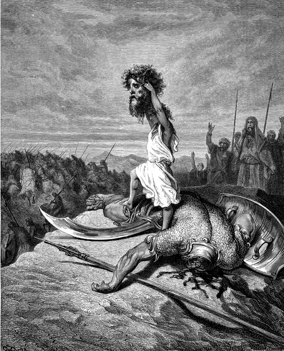Доложили Саулу, что Давид хочет бороться с Голиафом. Саул позвал Давида к себе и сказал ему: «Где тебе бороться с таким великаном: ведь ты еще мальчик, а он уже давно ходит на войну».