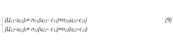 (Ц1-ц1) t = n1 (ц1-с1) =n2 (ц2-с2) =…,