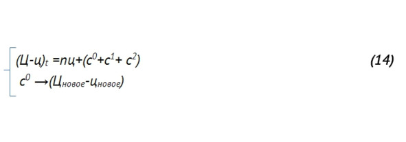 Таким образом, для того чтобы развивалась экономика, можно понижать чистую ценность товаров, отбирая больше средств с3 из правой части равенства производства – обмена, в надежде, что в будущем увеличится производительность по чистой ценности до (Цновое-цновое) t. Но это в ущерб настоящему, потому что тогда, чтобы сходилось равенство производства —обмена, нужно, чтобы росла цена ц продукта – на величину цотобр – товары дорожают: