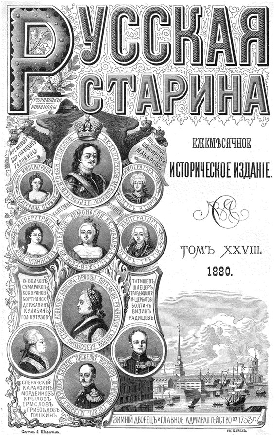 Титульный лист журнала «Русская старина» 1880 г. В нем регулярно публиковались мемуары