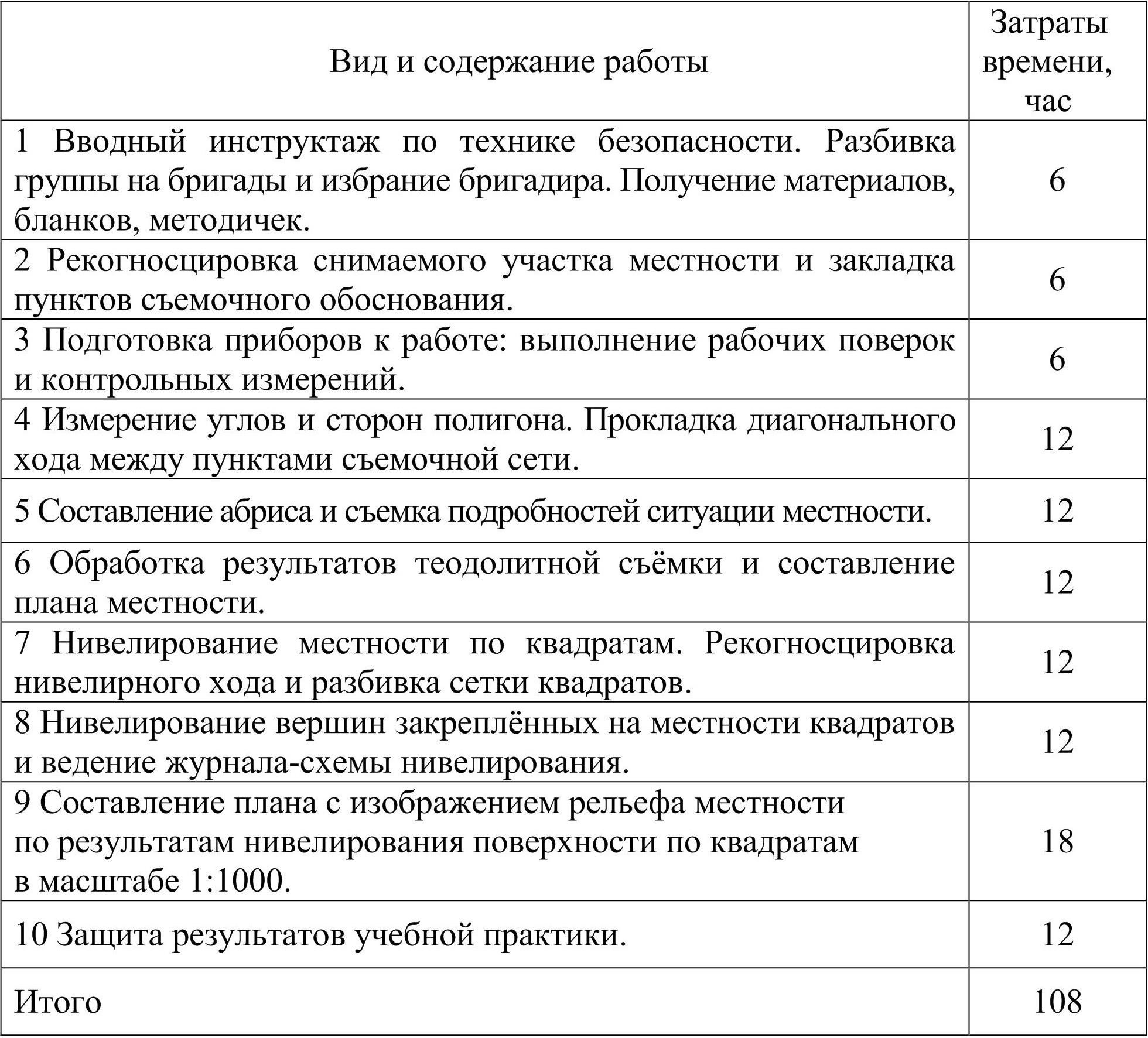 1.1 Содержание учебной практики по дисциплине «Геодезия»