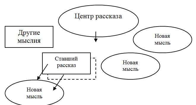 Ставшее мышление (Схема 39). Предполагает более простую и уже устоявшуюся схему организации работы с уже-определенным рассказом.