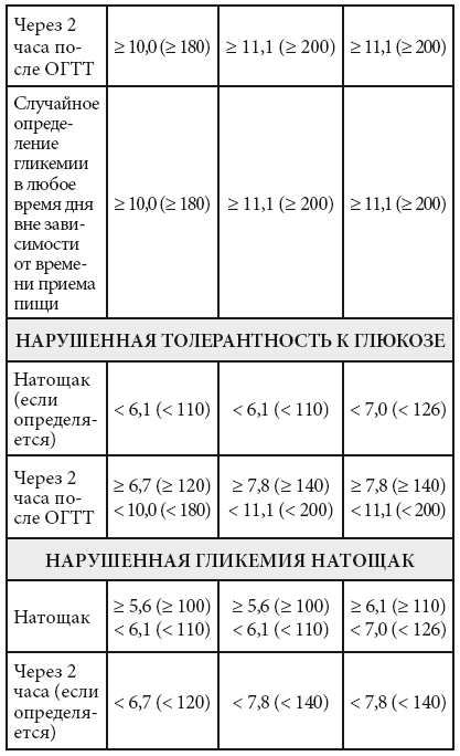 Таблица 1. Диагностические критерии сахарного диабета и других нарушений углеводного обмена (ВОЗ, 1999).