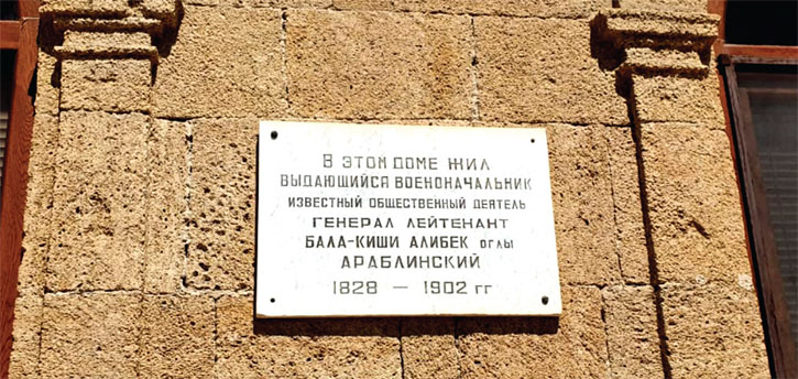 Мемориальная доска на доме генерала Б. Араблинского, г. Дербент