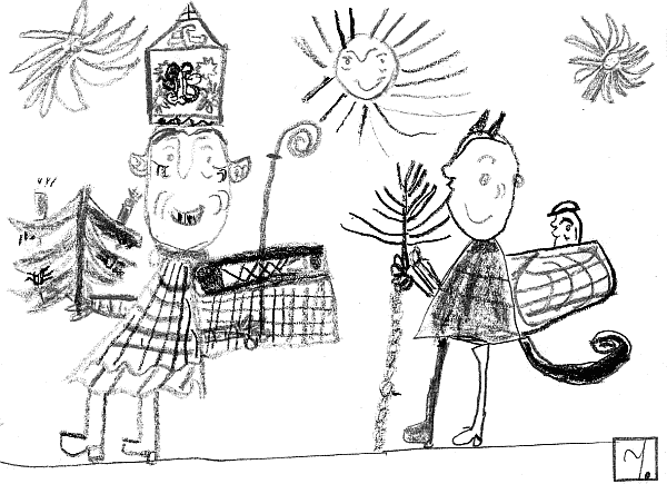 Неизвестный автор. Новогодние праздники. Злин. Общеопытная школа им. Масарика. 1920-1930 гг. Бумага, цв. картон, цв. карандаш. 20 × 14,5. ИХО РАО.