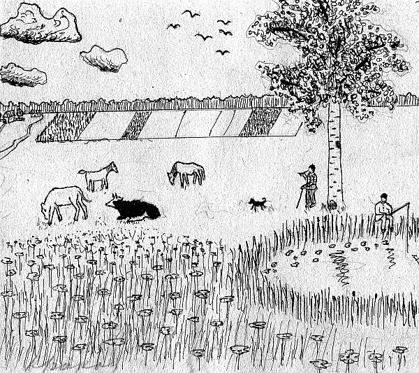 Кракау В. Сельский пейзаж. Злин. Бумага, тушь, 14 × 15,5. ИХО РАО.