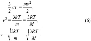 где к = R / Na – постоянная Больцмана, равная 1,38 ґ 10–23 кДж/кмоль. Зная кинетическую энергию молекулы, можно рассчитать ее среднюю скорость