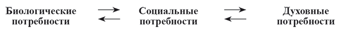 III. Социально-ориентированные духовные потребности (духовные потребности → социальные потребности).