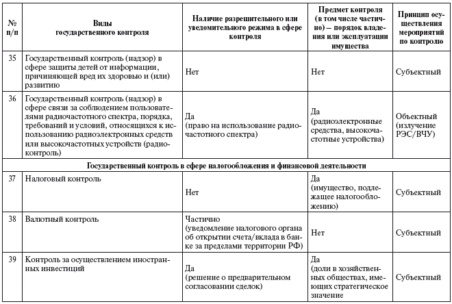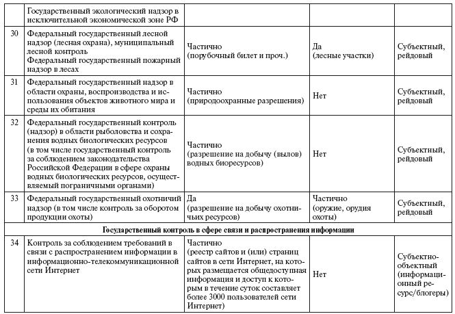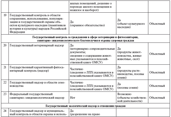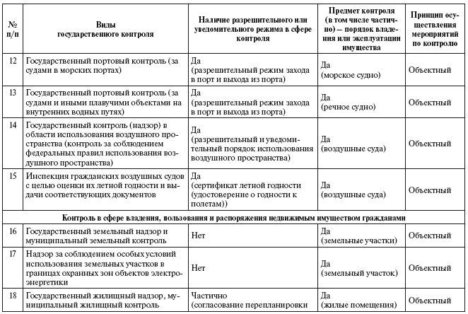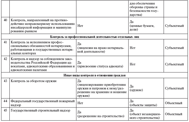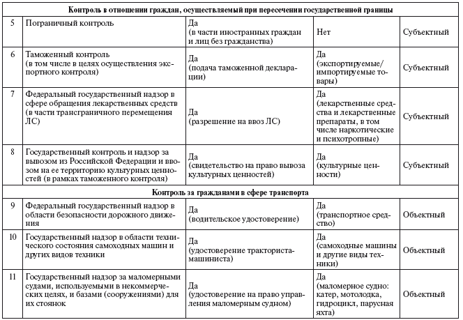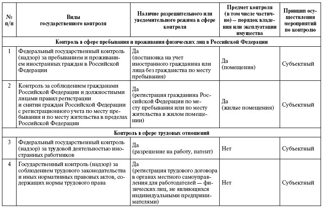 Ниже указан перечень таких видов контроля, при этом его следует отличать от приведенного ранее перечня. В вышеприведенном списке понятен предмет проверки деятельности граждан, и при наличии организационного решения такой контроль мог бы осуществляться в отношении граждан. В приводимом ниже перечне предмет контроля в отношении граждан остается неясным. Такие виды контроля не были включены в табл. 1, и к ним следует отнести: