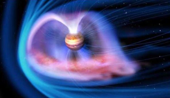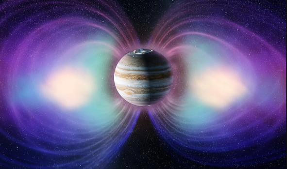 Наличие магнитосферы было установлено до мифологических полетов АМС США: «Магнитосфе́ра Юпи́тера – полость, создаваемая в солнечном ветре планетарным магнитным полем Юпитера, где происходят разнообразные процессы взаимодействия солнечного ветра, межпланетного магнитного поля, собственного магнитного поля Юпитера и окружающей его плазмы. Простираясь на более чем 7 миллионов километров по направлению к Солнцу и почти до орбиты Сатурна в противоположном направлении, магнитосфера Юпитера является самой крупной и мощной среди всех планетарных магнитосфер Солнечной системы, а по объёму представляет собой самую большую непрерывную структуру в Солнечной системе после гелиосферы. Более широкая и плоская, чем земная магнитосфера, юпитерианская на несколько порядков величины мощнее, а её магнитный момент в 18000 раз больше.