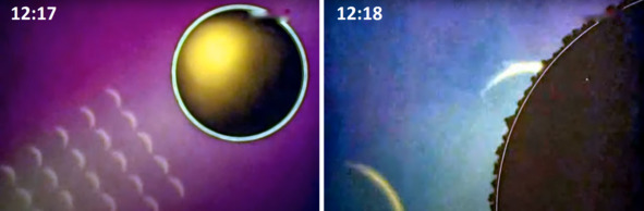 При земной гравитации испытатель не может совершать такие прыжки и перевороты без надлежащих усилий. Поэтому на кадрах слева нет никаких изображений. Испытатель не может так зависать без специальных подвесов и без тренажера, который бы позволил ему совершать акробатические трюки. На кадре справа испытатель свободно отталкивается от поверхности опоры одной рукой и тут же взмывает резко «вверх». Без труда и напряжения выполняются сальто вперед и назад с места.