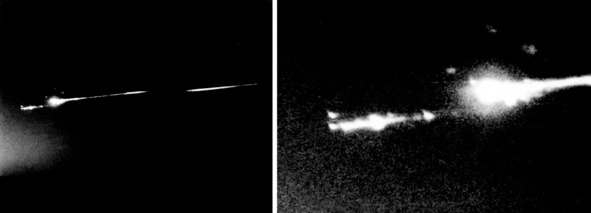 Это произошло до входа в атмосферу Земли в командном модуле «Аполлон-13» (СМ). На фотографии изображена гибель какого-то космического объекта. Предположительно это искусственный спутник Земли, который вошел в атмосферу с большой скоростью, и скорее всего, сгорел в Атмосфере. Разрушение конструкции очевидно. Объект распадался на части, которые тоже сгорели в атмосфере. Предположительно, это мог быть спутник-ретранслятор «Тетра-А». Такой аппарат у НАСА был, он успешно имитировал пилотируемый полет. Конечно, американские обманщики не хотели признавать, что это явление является на самом деле входом в атмосферу беспилотного дублера команды «Аполлон-13». Возможно, это был ИСЗ США «Тетра-А», который имел аппаратуру, позволяющую вести переговоры между «космонавтами» и ЦУП в Хьюстоне. При этом радиосигналы в ЦУП будут поступать со стороны Луны. Сайт НАСА показал момент выхода «космонавтов» после приводнения. На снимке 35610, ниже, лоскуты майларовой ткани на боковой поверхности.