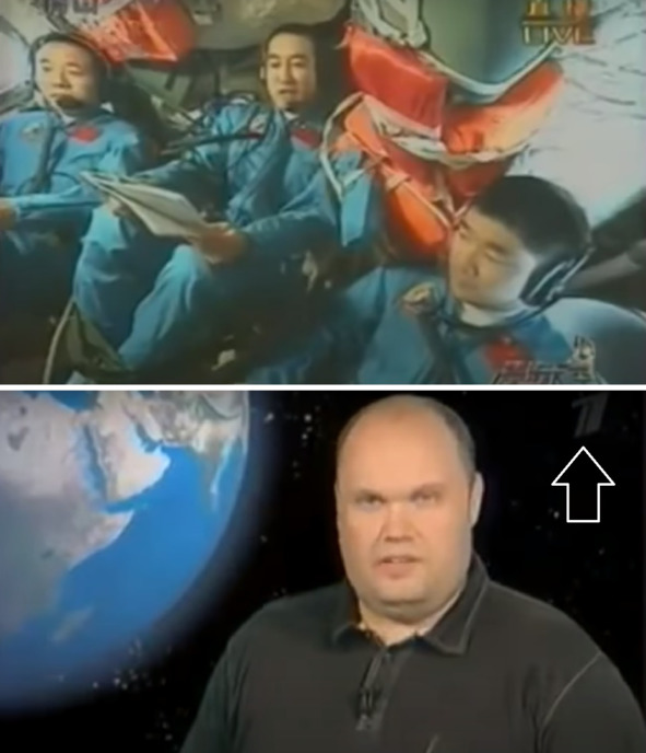Нет шума от вентиляторов во время «трансляции» и эта передача вышла по каналу «ОРТ»: «Китай подделал съёмку выхода в «космос?». Это был намек «товарищам» из КНР!
