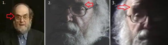 На самом деле мужчина из интервью Тома, очень похож на Стенли Кубрика, образца 1997 года, несмотря на то, что его внешность изменила «прическа» и борода, плохое освещение, признаки болезни и резкое старение. Необходимо учесть, что кадры, которые представил Мюррей, являются «зеркальными». На кадре мы видим освещенную сторону левой стороны лица, которая на самом деле является правой стороной лица. Кадр номер 1, изображение Кубрика из фильма 1997 года. Изображение нормальное. Кадр номер 2, изображение Кубрика в марте 1999 года. Кадр зеркальный. Кадр номер 3, изображение из фильма Мюррея, но кадр показывает освещение левой стороны лица, а не правой, как на кадре номер 2. Отсюда и «расхождения» во внешности. Правая бровь на правой стороне лица Кубрика была опущена, левая бровь слегка вздернута. Сравнивать эти два кадра сложно, потому, что кадр слева из фильма «Stanley Kubrick’s Speech» имеет размытые контуры лица. Правый кадр из фильма Тома Мюррея освещает только одну сторону лица, и этот кадр является «зеркальным».
