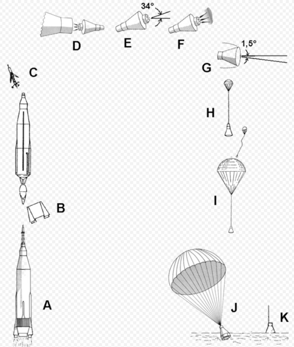 На другой схеме приводнения, при орбитальном «полете» американских «космонавтов» подушка безопасности нарисована на рисунке «J». Но в рисунке с изображением тренировки сброса с самолета американские сказочники продемонстрировали все этапы этого события, кроме испытания «ударной юбки», подушки безопасности. Вероятно, что те люди, которые рисовали эту схему, просто не знали, что такая надувная конструкция под тепловым экраном существовала, по версии создателей этого «чуда» американской технологии. Сбрасывать капсулу с самолета можно было для инсценировки возвращения ее из космоса. Потом подбирать ее из воды при помощи вертолета. Описание фотографии, на которой зафиксировано возвращение Шепарда.