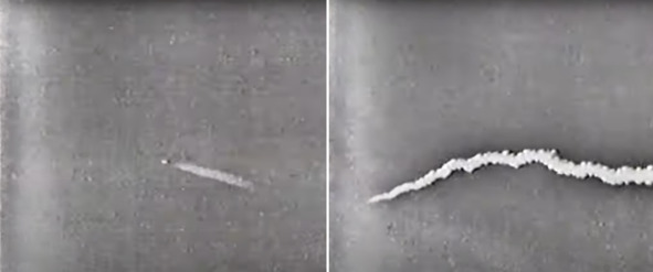 Такое необычное явление наблюдатели с земли с помощью обычной телекамеры, без использования мощной оптики должны были увидеть. При большем приближении, при рассмотрении момента прекращения образования инверсионного следа наблюдается отсутствие резкого расширения факела. Сам факел наблюдается относительно хорошо. Наглядно это демонстрируют 2 последовательных кадров из фильма НАСА и кадр с большим увеличением, показывающий момент завершения образования инверсионного следа. Расширение факела раскаленного газа хорошо наблюдается при старте ракет «Союз». Это очень необычное зрелище. В небе при определенных условиях освещения, утром или вечером, на заре, возникает своеобразная «медуза». Если такого освещения нет, все равно, при полете ракеты, начиная с полета в стратосфере прекрасно видно расширение выбросов газа из сопла ракетных двигателей. Расширение факела наблюдалось после прекращения образования инверсионного следа при старте ракет «Сатурн-5». Но в случае с полетом ракеты программы «Меркурий» никакого аномального расширения факела не наблюдается. Фильм НАСА можно посмотреть по ссылке [41]. Фотографии капсулы из музея демонстрируют со всех сторон отсутствие на нижней части капсулы рядом с тепловым экраном, хоть каких-то следов аэродинамического нагрева.