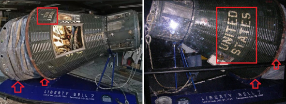 Американцы решили поднять капсулу Гриссома со дна океана. Капсулу поместили в музей, видимо поверхность капсулы не подкрашивали. Эта надпись выполнена обычной краской, нанесенной без соблюдения простых и известных условий нанесения краски на металлическую поверхность. Надпись белой краской была нанесена на поверхность с помощью трафарета. Поверхность не обезжиривалась растворителем, конструкция не помещалась в сушильную краску после нанесения надписи. Качество покраски было кустарным. Такой вывод можно сделать при ближайшем рассмотрении подписи. Уже на подготовительном этапе краска на подписи начинала частично отслаиваться от поверхности.