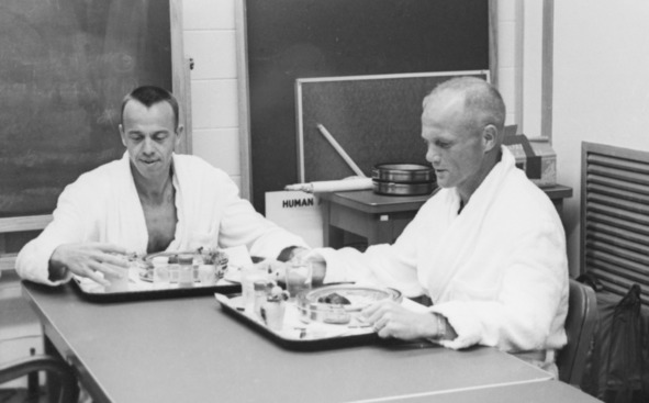 Это была проблема космического туалета. Все остальное сказочники НАСА учли. Фотография справа демонстрирует «комплект выживание А». Фотография слева показывает гипсовые формы, необходимые для производства контурных кушеток. Очень похвальная предусмотрительность. Американцы все учли, даже таблетки от морской болезни, как это трогательно! Но где упоминание об американском, герметичном космическом туалете (АСУ)? Где сведения об ассенизационно-санитарном устройстве, о космическом «туалете» в программе НАСА? Где хотя бы несколько слов о наличии калоприемника, или приемника мочи? Мало ли что может произойти с «героем» при перегрузках и в дальнейшем полете в космосе!