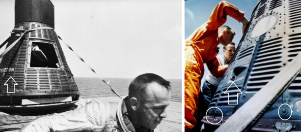 Проще говоря, ударные волны, турбулентность потока, уменьшение пограничного слоя, высокие температуры не оставляют никаких шансов для болтов без шайб гроверов, для слабеньких винтиков и тонкого слоя белой краски. Демонстрация белой, яркой надписи на капсулах США в суборбитальных полетах, после приводнения это прямая улика против фальсификации первых двух «полетов» программы НАСА «Меркурий».