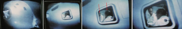 Впоследствии часть стержней станет невидимой. Возможно, это было следствием попытки удалить капельки воды на линзе, которые, конечно же, выдавали наличие на «Луне» США образования конденсата из атмосферы. При «прямой трансляции» хорошо наблюдаются моменты, указывающие на склейку видео пленки, которая содержала кадры, снятые до самого «лунного» шоу. Следы монтажа успешно выдавались за помехи. В эти перерывы «трансляции» можно было поменять задний фон.