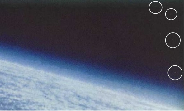 Подпись под фотографией: «Поверхность Земли из космоса. Фото Г. С. Титова. Космический корабль „Восток-2“. Кинокамера „Конвас-Автомат“, 1961 г». Эта фотография фигурировала в газете «Известия». [10] В статье «Звёздная слепота американских лунных астронавтов» Попова А. И. наглядно продемонстрирован факт использования этой фотографии в газетной публикации: «а) страница из советской газеты „Известия“ от 28 августа 1961 года, на вставке – Г. С. Титов б) кадр со звёздами на дневной половине орбиты»: «Герман Титов взял с собой в суточный полёт профессиональную кинокамеру „Конвас“ с 35-мм цветной киноплёнкой. На илл.5а показан разворот газеты „Известия“ за 28 августа 1961 года с космическими снимками Германа Титова. Это были первые снимки Земли из космоса, которые увидел широкий читатель. Рядом показан цветной кадр илл.5б из плёнки Титова. На нём явственно проступили звёзды, хотя и в небольшом количестве. Это первая известная автору фотография, которая показала, что звёзды не только видны с орбиты на дневной половине Земли, но и могут быть сфотографированы». [11] Ниже представлены упомянутые снимки Титова.