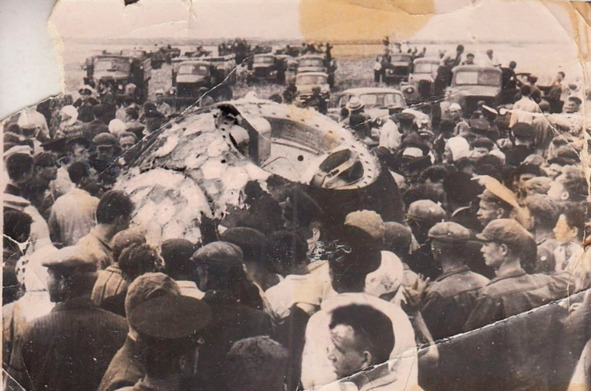 Космическая капсула Титова сильно обгорела, как и космическая капсула Юрия Гагарина, реальность полета которого американские пропагандисты тоже ставили под сомнение. Свидетели этого события рассказывали, как развивались события в момент приземления космической капсулы Германа Титова и сделали фотографию капсулы Титова Г. С.: «Свидетельствует Арвид Владимирович Палло: Большая толпа людей собралась на летном поле и приветствовала возвратившегося из космоса Германа Степановича Титова, бывшего в космическом полете одни сутки. По внешнему виду состояние Г. С. Титова было хорошее, хотя и утомленное. Космический корабль приземлился на гороховом поле… По внешнему осмотру состояние космического корабля хорошее. В полете Герман Степанович, видимо, плохо переносил невесомость, так как внутри корабля были следы рвотных масс. Выполнив демонтажные работы, корабль был готов к эвакуации. День был жаркий и солнечный, томила жажда. Пришлось немного воспользоваться корабельным запасом воды. К кораблю подъехал секретарь Краснокутского райкома партии. Осмотрев корабль и узнав, что мы страдаем от жажды и отсутствия питания, дал указание доставить воду, а питание обеспечить в ближайшем полевом стане… Ниже фотография этого события.