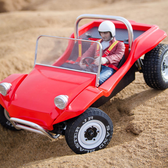 Леонид Коновалов разместил в своей публикации фотографию НАСА, на которой показано, как испытывались «лунные» колеса американского «луномобиля». Это изображение, по мнению кинооператора, является доказательством его явно ошибочного предположения: «Снять вылет песка на 2 метра в высоту (при скорости ровера 10—18 км/ч) просто невозможно на полноразмерной модели. В земных условиях даже при скорости отрыва песка 36—40 км/ч (что в 2 раза больше максимальной скорости ровера) песок поднимается на высоту не более 1 метра. В земных условиях песок из-под колёс не поднимается выше 1 метра. А вот на уменьшенной копии сделать вылет песка выше модели можно без труда. Уменьшенная радиоуправляемая модель движется по песку. Вот так примерно эта модель выглядит вблизи». [1] Леонид Коновалов представил фотографию малого макета автомобиля с небольшой куклой на сидении. Чтобы кукла не упала, ее закрепили специальными ремнями.