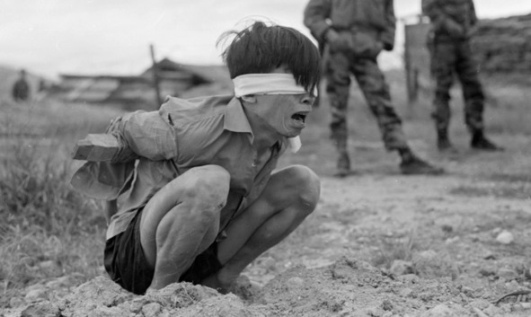 В ЦРУ США эта методика широко использовалась в отношении вьетнамских пленных во Вьетнаме. Правда поза неподвижности, которую принимал вьетнамец, при допросе, была крайне неудобной и почти болезненной. Ниже фотография, где изображена пытка вьетнамца. Он, очевидно, страдает и мучается от такого издевательства над ним. Но психологический срыв допрашиваемого несчастного партизана происходил значительно быстрее. Человек впадал в панику и готов был рассказать все. Партизана не подвергали при этом физическому избиению.
