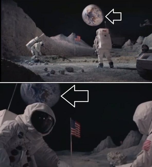 Созданием конструкции глобуса Земли на черном «космическом» небе занимались и в фильме «Бриллианты навсегда». По всей видимости, был изготовлен большой шар, на поверхности которого были нарисованы облака, океаны и материки.