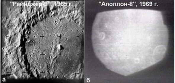 И все же, вес даже не главное. Габариты этой телевизионной установки были немалыми. Она помещалась в усеченный конус с диаметром у основания около 80 см, при вершине 40 см и длина конуса была примерно 165 см. Можно ли было бы разместить в КМ такое оборудование? Можно, вот только астронавтам места осталось бы слишком мало. В общем, не компонуется столь габаритное устройство в кабине КМ. Что, надо было бы пожертвовать размещением одного астронавта, но установить телеаппаратуру от «Рейнджера»? Ведь установить такое оборудование – это практически разместить в КМ еще одного астронавта, причем как по весу, так и по габаритам. Да и зачем надо было помещать громоздкое телевизионное оборудование в КМ, когда на борту были компактные фото и кинокамеры, позволяющие получить изображение значительно лучшего качества, чем такая телеаппаратура?» [1] Анонима понесло, а все было гораздо проще. Снимки АМС США выдавали за снимки «астронавтов».